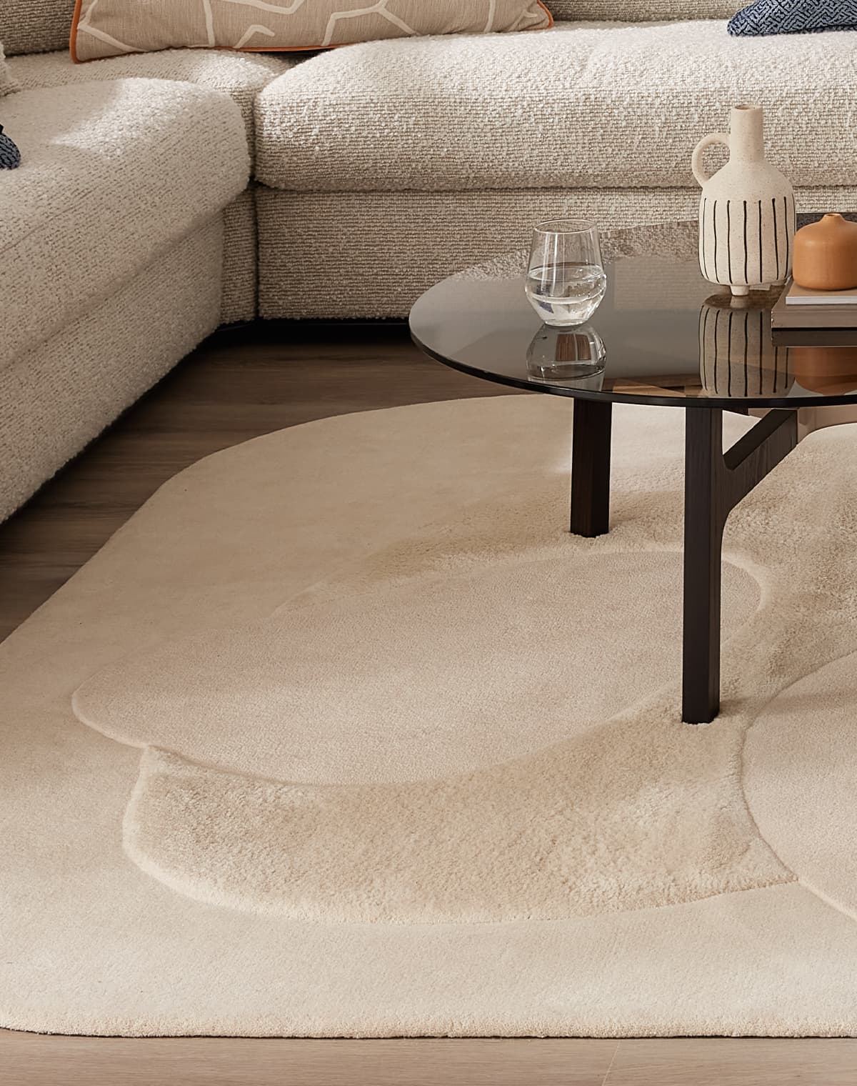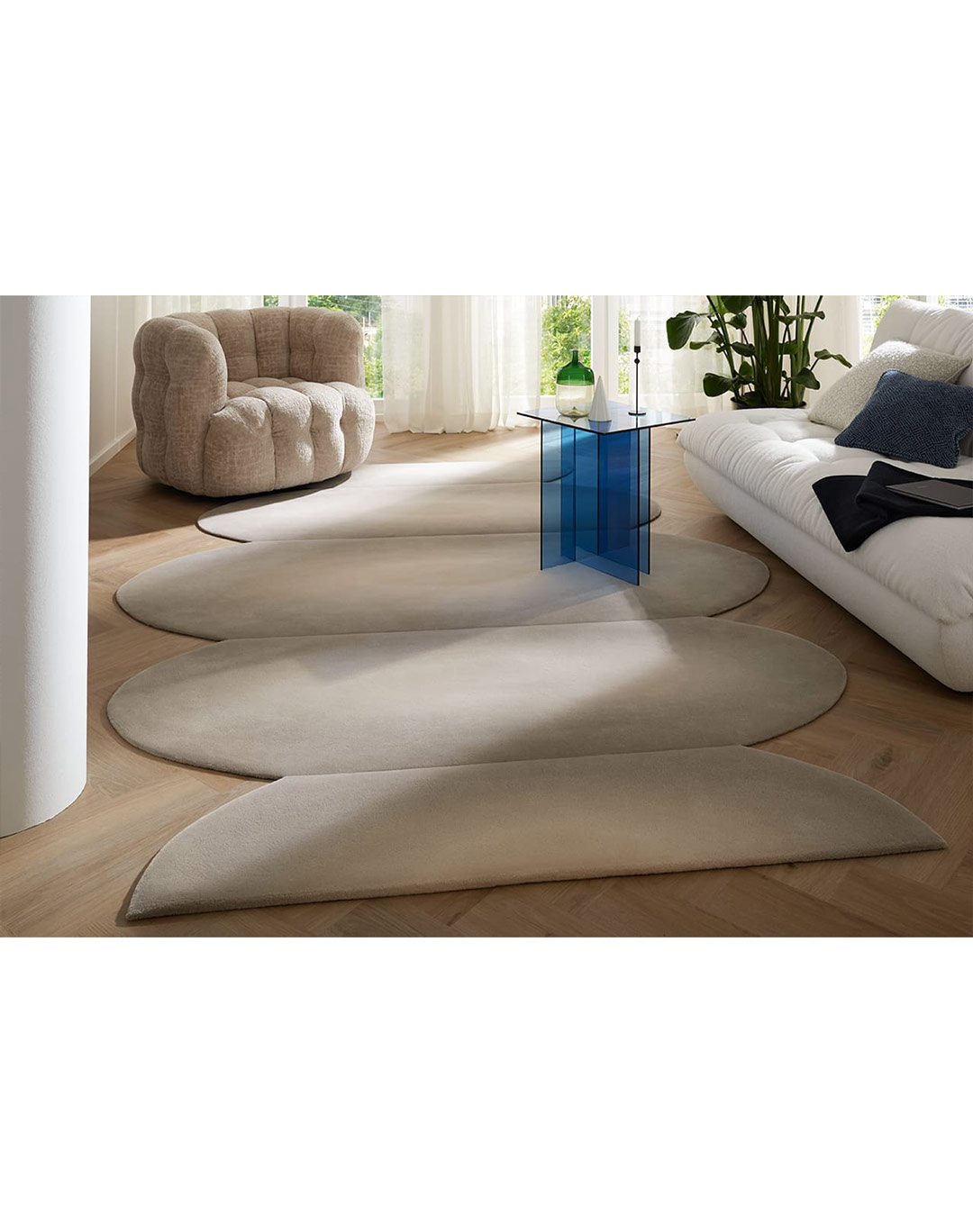 Tepih se ovde ne posmatra samo kao dekorativni element, već kao promišljen dizajnerski objekat sa jasnim estetskim identitetom. Svaki model nastaje kroz pažljivo izbalansiranu igru formi, tekstura i tonova, a izrađen je od odabranih materijala poput viskoze, fine vune i svile, koji prostoru donose mekoću, dubinu i suptilnu eleganciju.