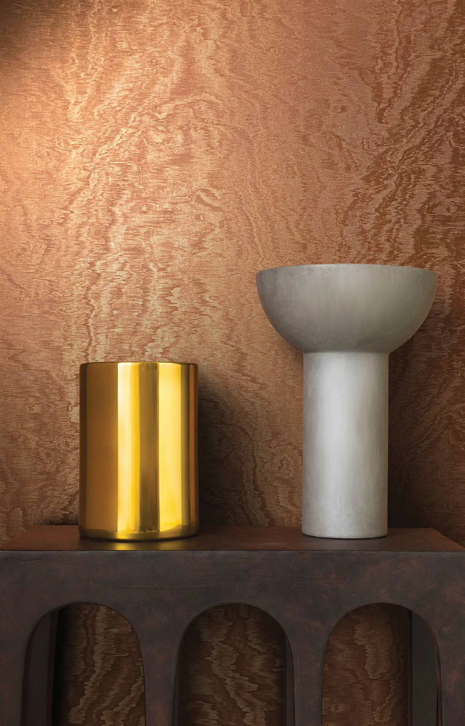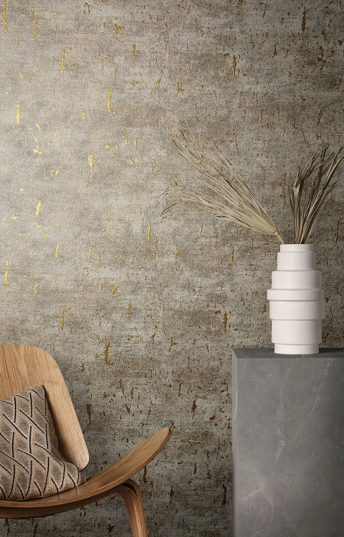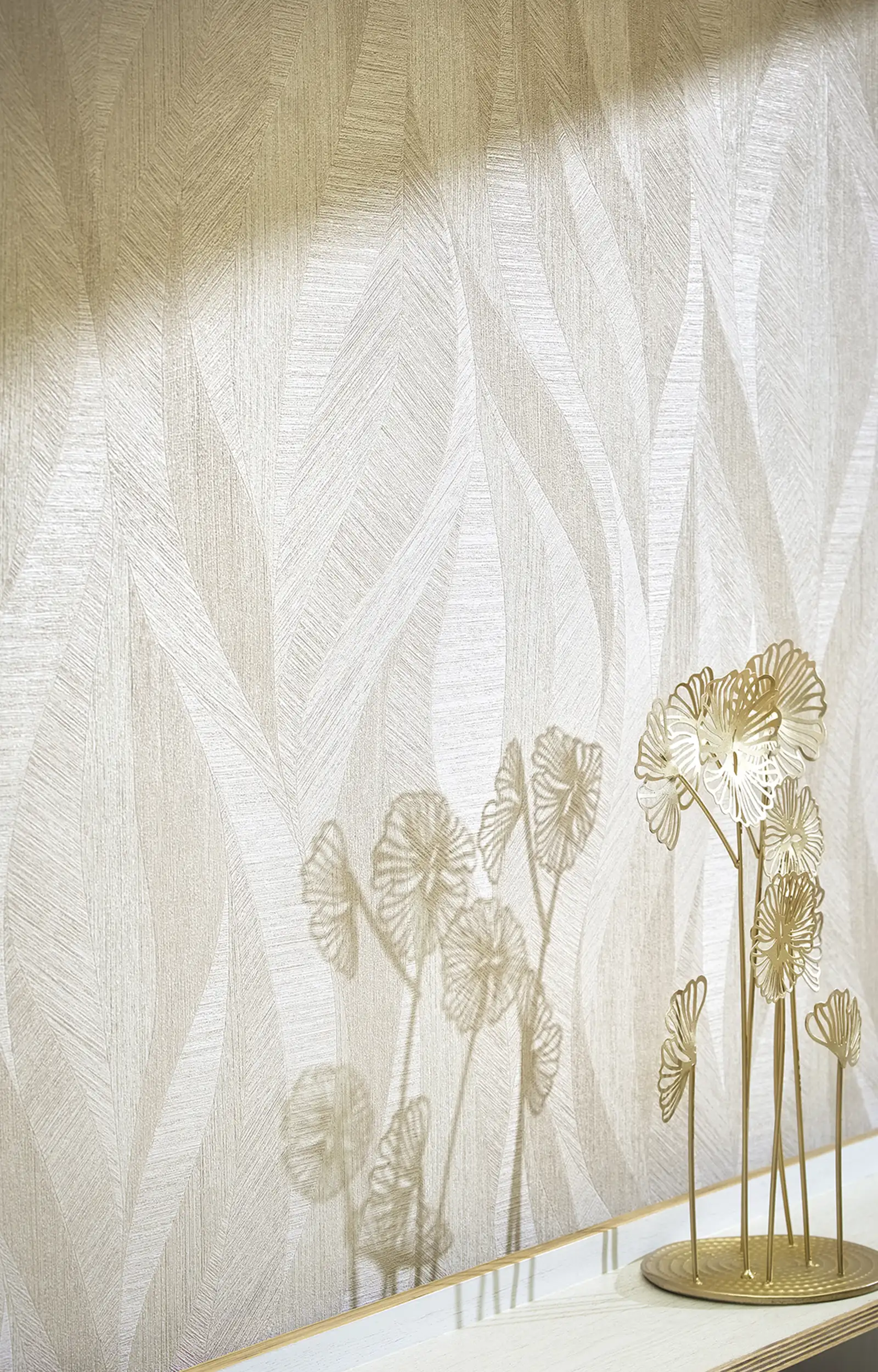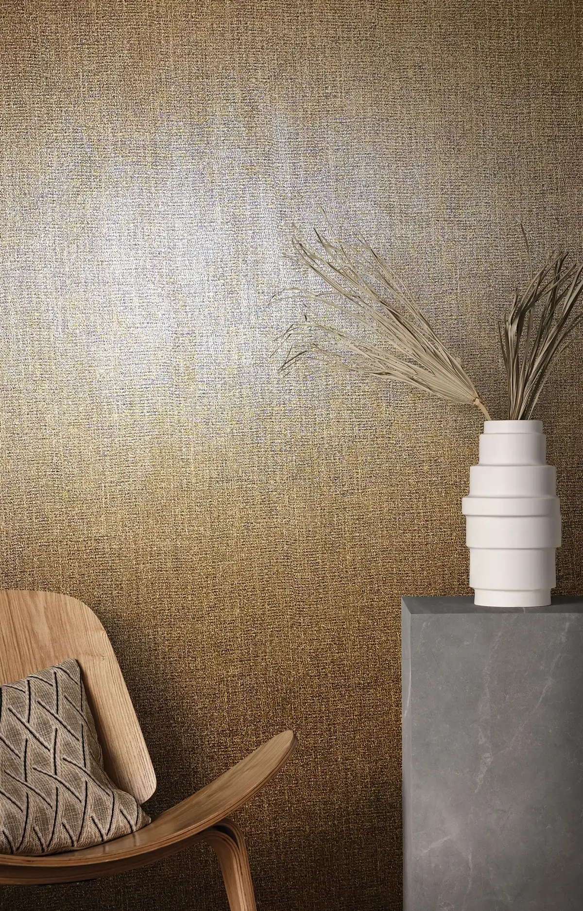 Minimalistički karakter kolekcije dodatno je oplemenjen suptilnim zlatnim akcentima koji unose notu luksuza bez preterane dominantnosti. Zlatni tonovi diskretno reflektuju svetlost, dajući prostoru sofisticiran sjaj i dubinu, bez narušavanja njegove smirene prirodne estetike.